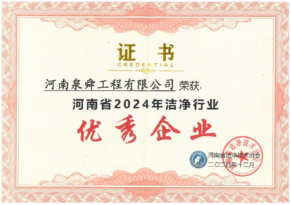 • 2024年河南省洁净行业优秀企业