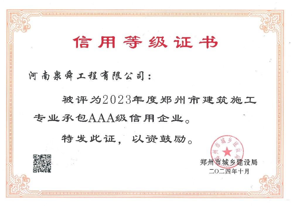 • 2023年度郑州市建筑施工专业承包A···