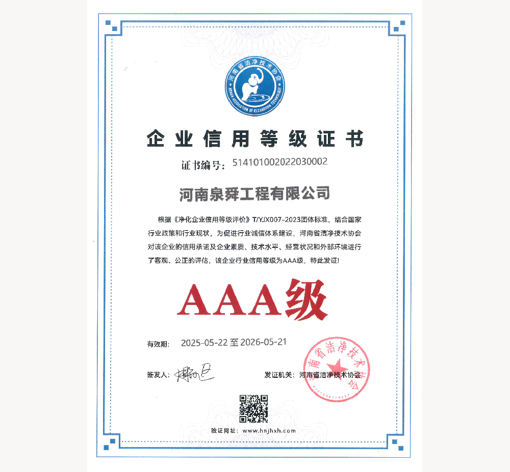 • 2025年度洁净协会AAA级信用等级
